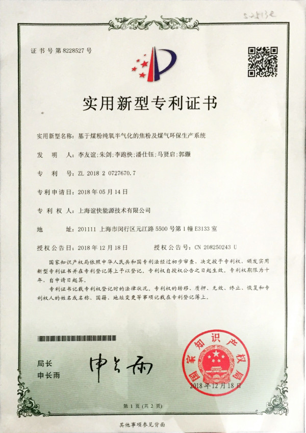• 發(fā)明專利——煤粉純氧半氣化